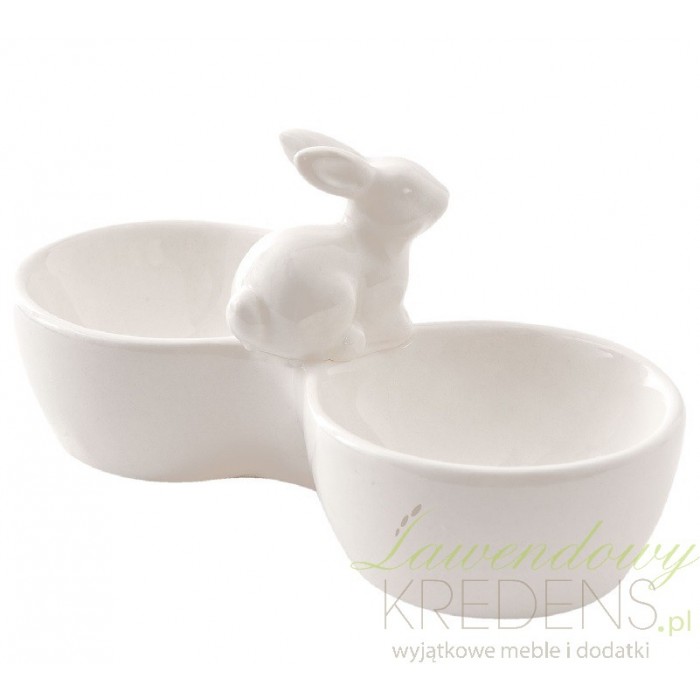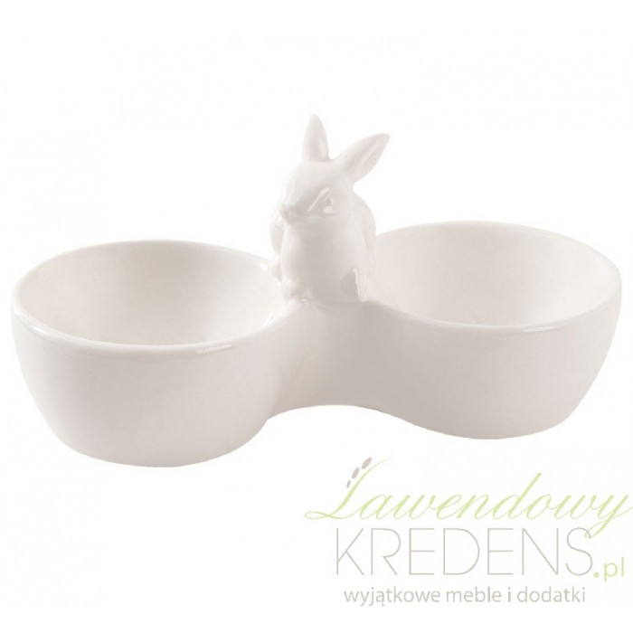 Podstawka do jajek ma śliczny biały kolor i wykonana jest z ceramiki. Znajdzie się w niej miejsce na dwa jajka, a oddziela je malutki i śliczny króliczek. Dodatki do kuchni to wspaniałe arcydzieła, które stworzą unikalny klimat w twoim domu.