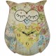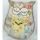 Kolorowy zegar w kształcie sowy z wzorzystą tarczą usłaną kwiatami zrobiony z mdf.
