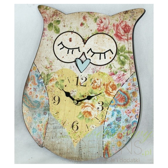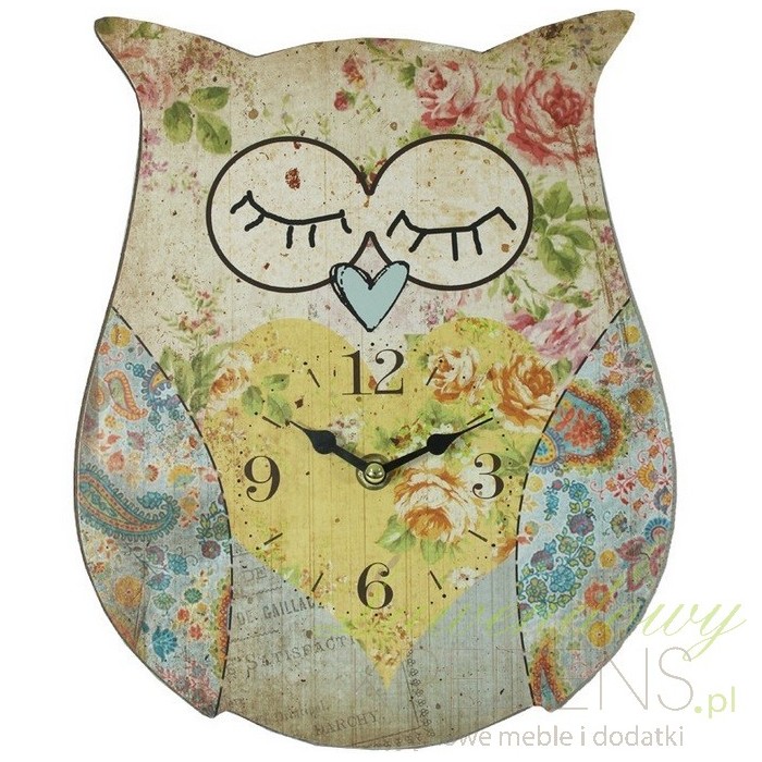 Zegar z sową ze zmrużonymi oczami i noskiem w kształcie serduszka ma wiele postarzeń na całej powierzchni. Doskonały do pokoju dziecka oraz do kuchni. Nietypowy kształt zegara z pewnością będzie zwracał na siebie uwagę, niezależnie od miejsca które ozdobi. Zegary ścienne takie jak zegary z sową są dostępne u nas w bardzo korzystnych cenach!