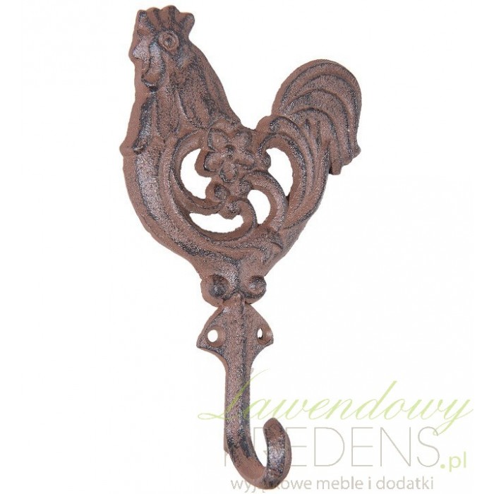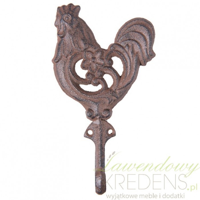Wieszak ścienny w stylu prowansalskim ma kolor ciemnobrązowy. Pojedynczy wieszak w kształcie kury posiada także ciemne przetarcia, przez co staje się jeszcze bardziej oryginalny. Wieszaki ścienne możesz wykorzystać jako uchwyty na rękawice kuchenne lub ściereczki. Taki wybór wieszaków ściennych znajdziesz tylko na lawendowykredens.pl!