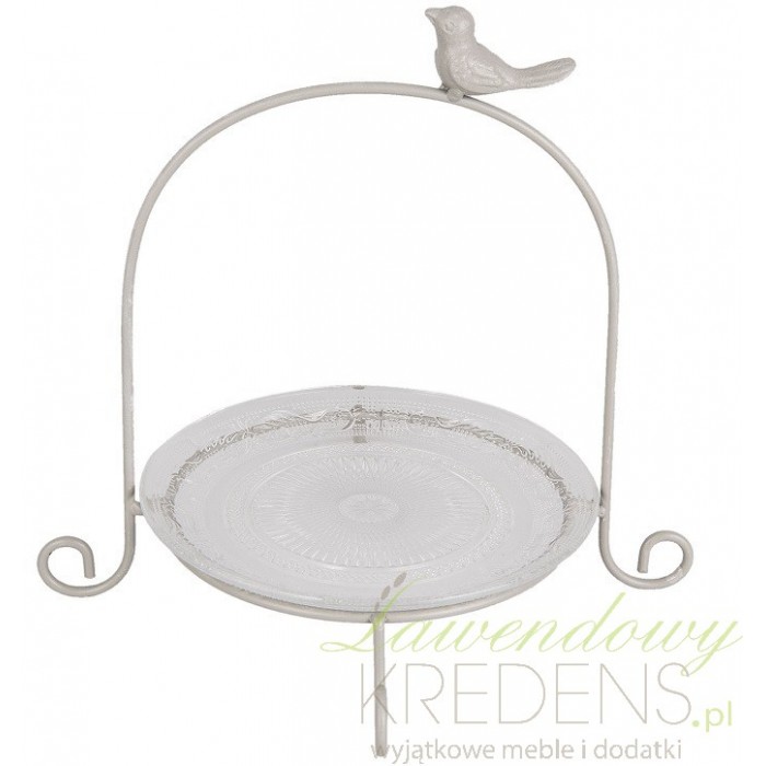 Szara ozdobna patera prowansalska firmy Clayre & Eef z ozdobnym ptaszkiem u góry!
