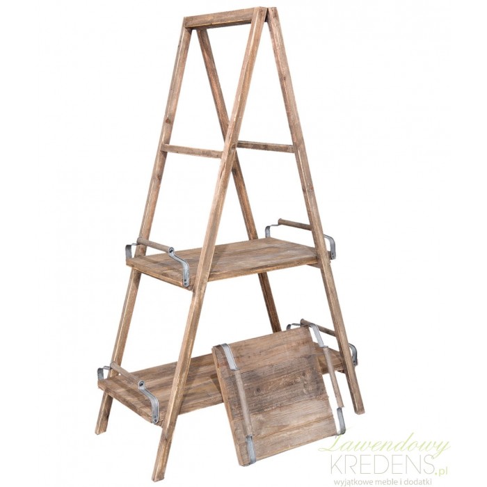 Regał w kształcie drabiny, którego połki stanowią wysuwane tace to mebel do wnętrz industrialnych i loftowych. Trzy półki o różnych rozmiarach są umieszczone pomiędzy szeroko rozstawionymi nogami drabiny i mają przymocowane metalowo-drewniane uchwyty. Półki możesz wyjmować i tworzyć mebel jakiego w danej chwili potrzebujesz. Regał drabina to bardzo oryginalny, ale też charakteryzujący się prostotą wykonania mebel, który może już niebawem zdobić Twoje wnętrze!
