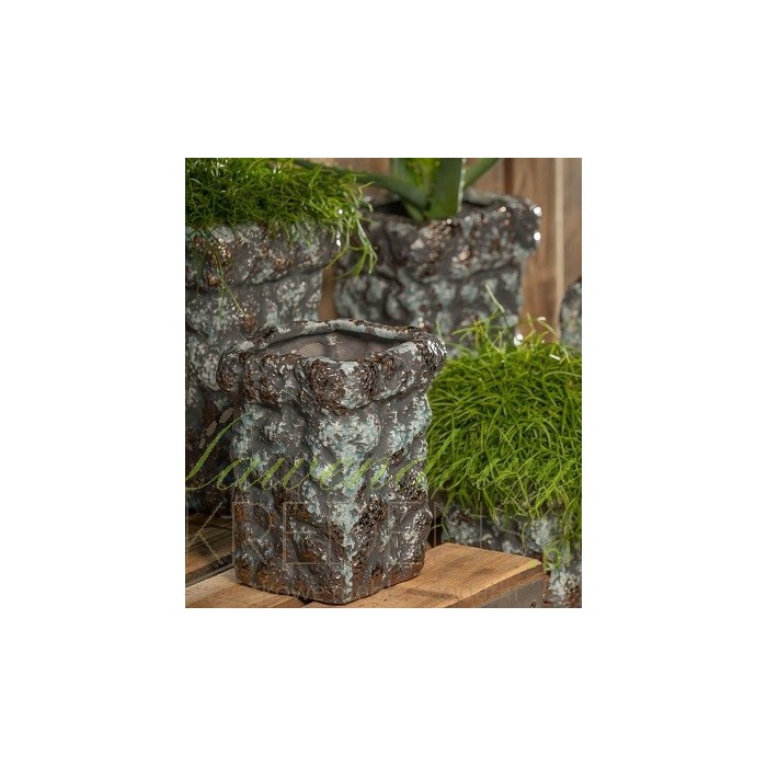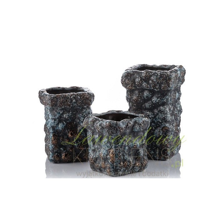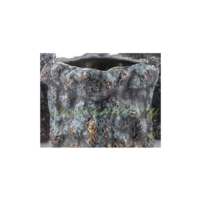 Osłonki na doniczki firmy Aluro to doskonały wybór. Osłonka prowansalska ma kwadratowy kształt i śliczne przenikające się kolory czerni, błękitu i złotego. Wygląda niezwykle oryginalnie i ma wyjątkową i niepowtarzalną strukturę. Warto ją mieć w swoim domu.