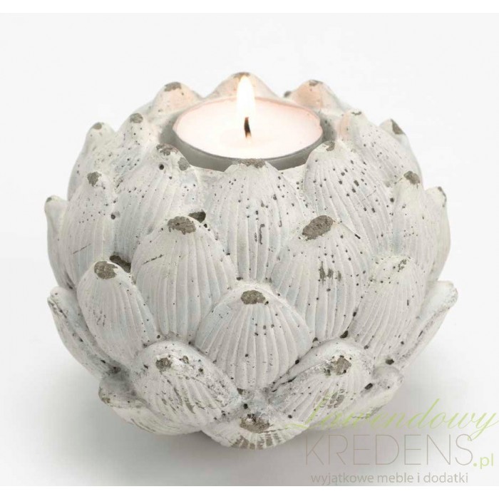 Przepiękny, jasny świecznik prowansalski w postaci ozdobnego karczocha!