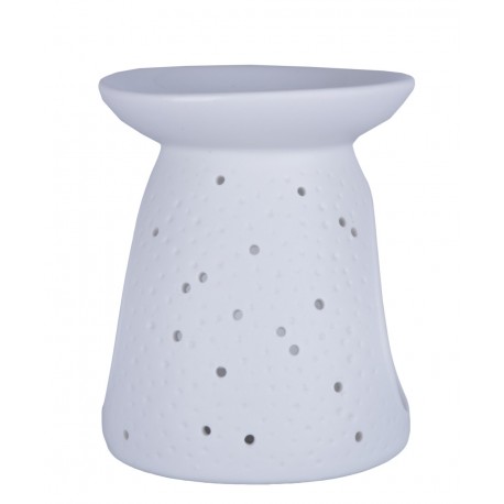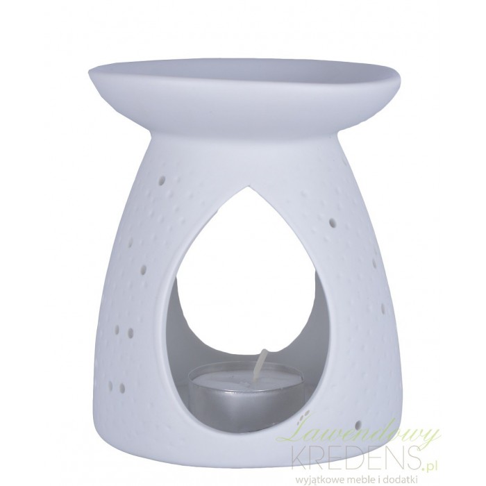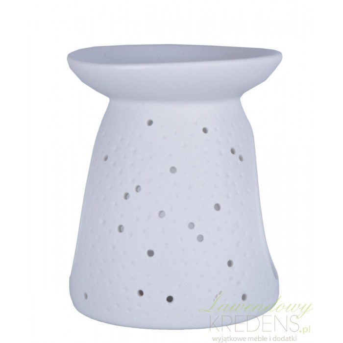 Dodatki do domu, a wśród nich domek na olejek to przepiękna dekoracja mieszkania, wyzwalająca wspaniałe zapachy. Kominek zapachowy wykonany jest z ceramiki i ma biały kolor. Posiada niewielkie ozdobne kropeczki, które nadają mu uroku.