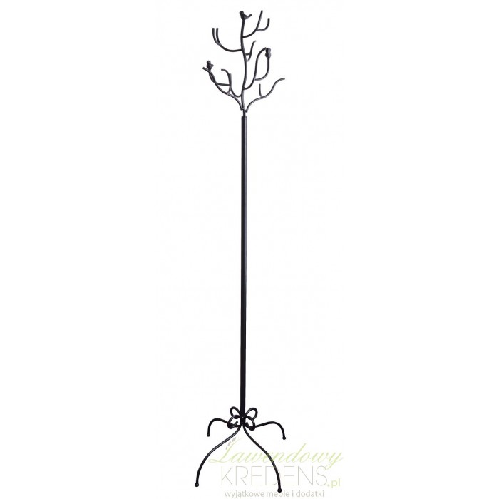 Urodziwy wieszak w stylu prowansalskim wykonano z metalu i pomalowano na czarno. Zamiast klasycznych haczyków wieszak posiada rozłożone gałązki, służące do wieszania kurtek i innych okryć wierzchnich. Uwagę przykuwają także małe, zdobnicze ptaszki siedzące na trzech gałązkach. Wieszak na ubrania jest najważniejszym elementem wyposażenia przedpokoju i korytarza, a co za tym idzie powinien być dopasowany do wnętrza i praktyczny.