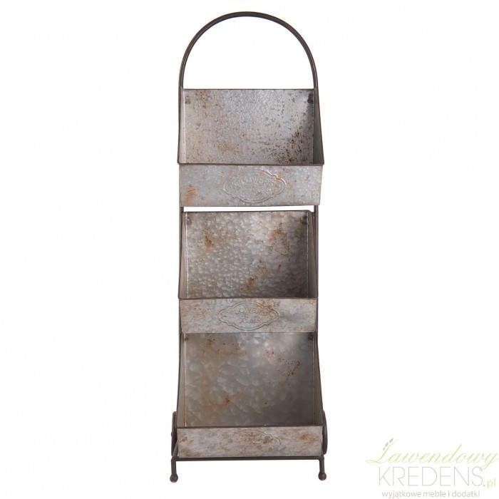 Kwietnik prowansalski to metalowy dodatek zaprojektowany aby pomieścić trzy kompozycje kwiatowe, które razem z francuską oprawą stworza oryginalną dekoracje w ogrodzie lub dużym salonie.