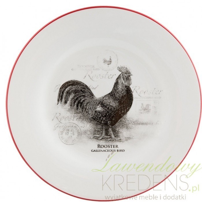 Oryginalne talerze w stylu prowansalskim wykorzystasz do serwowania posiłków podczas przyjęć oraz spotkań rodzinnych w większym gronie. Talerz z kurą stanowi ciekawą alternatywę dla zwykłych naczyń. Biało-czerwony talerz wykonano z ceramiki, co wpływa na jego swojski design. Zamów zestaw naczyń od Clayre&Eef i bądź gotowy na każdą okazję!