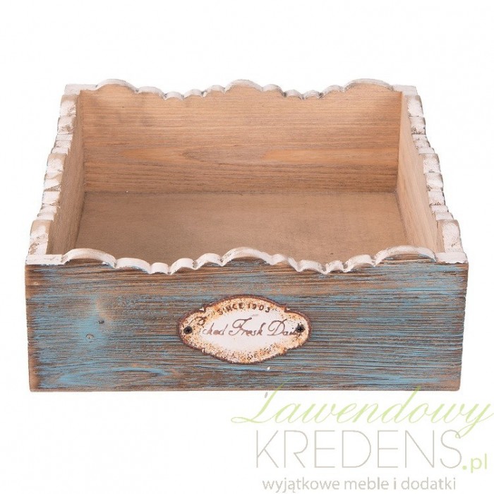 Serwetnik prowansalski o nieregularnym zakończeniu to dodatek, który udekoruje wszystkie stoły. Drewniany serwetnik ma niebieski kolor z przetarciami, a także można na nim ujrzeć tabliczkę postarzaną. Dodatki w stylu prowansalskim za każdym razem udowadniają nam jak bardzo są wyjątkowe.