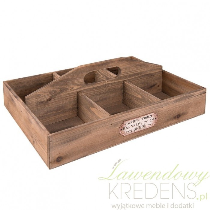 Drewniana taca prowansalska z przegródkami to pojemnik, który sprawdzi się jako miejsce do przechowywania drobiazgów oraz ustawiony w widocznym miejscu jako element dekoracyjny wnętrza.