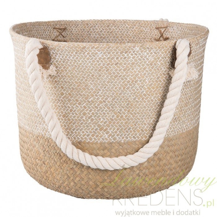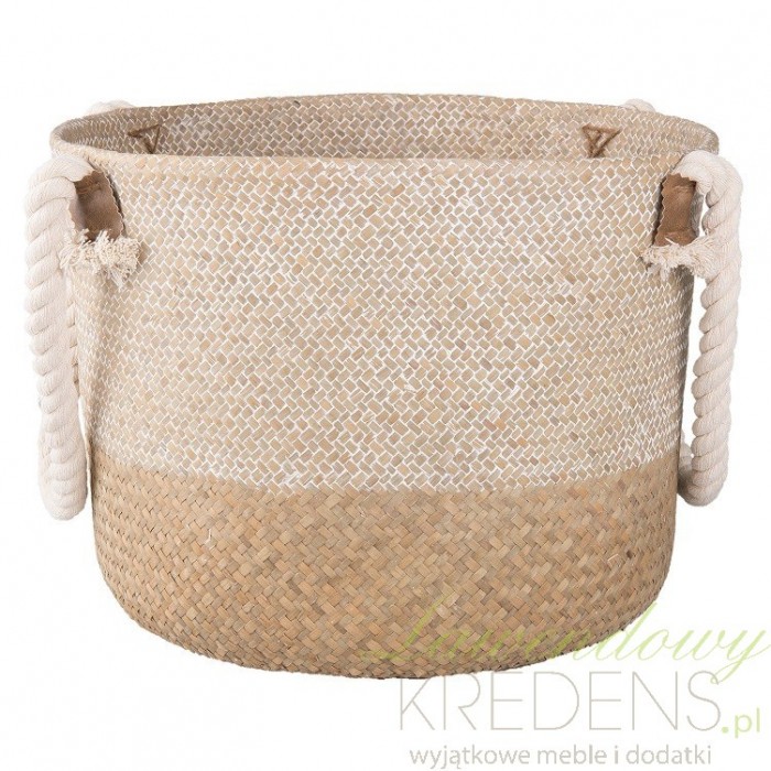 Kosz ozdobny ma przepiękny i bardzo kobiecy wygląd. Kosz z trawy morskiej ma ciepły, beżowy kolor który będzie pasował do każdego otoczenia. Pleciony kosz może spełniać parę funkcji, na przykład jako ozdoba domu lub na przykład miejsce na zabawki dla dzieci.