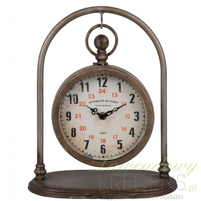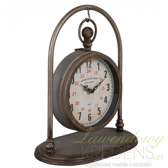 Zegar Vintage składa się z cyferblatu zawieszonego pod łukiem, nad owalną podstawą. Szarobrązowy kolor i mnogie postarzenia sprawiają, że wygląda jak zakupiony w francuskiej galerii z antykami. Zegar stołowy od Clayre&Eef to najlepszy sposób by wyposażyć wnętrze w niebanalne dodatki. Zwróć również uwagę na jasną tarczę z precyzyjnie oznaczonymi godzinami i minutami.