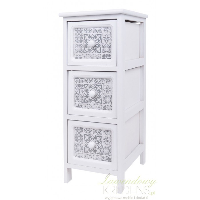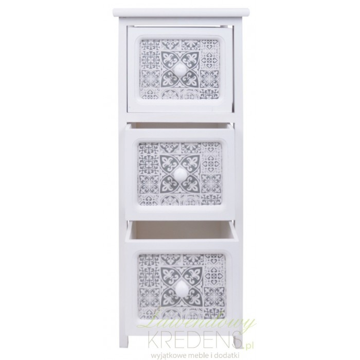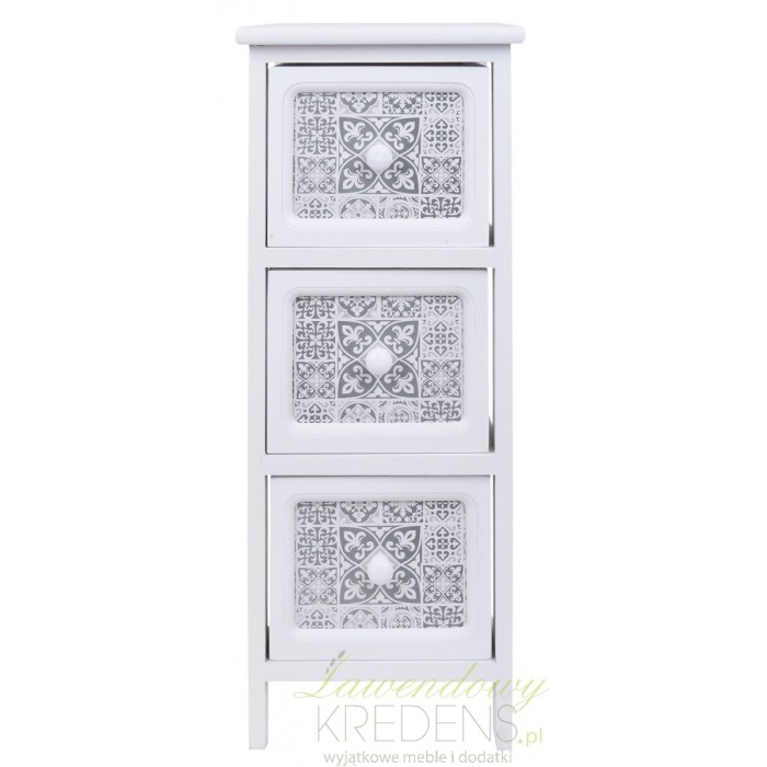 Biała szafka prowansalska z trzema szufladami zdobionymi unikalnymi mozaikami!