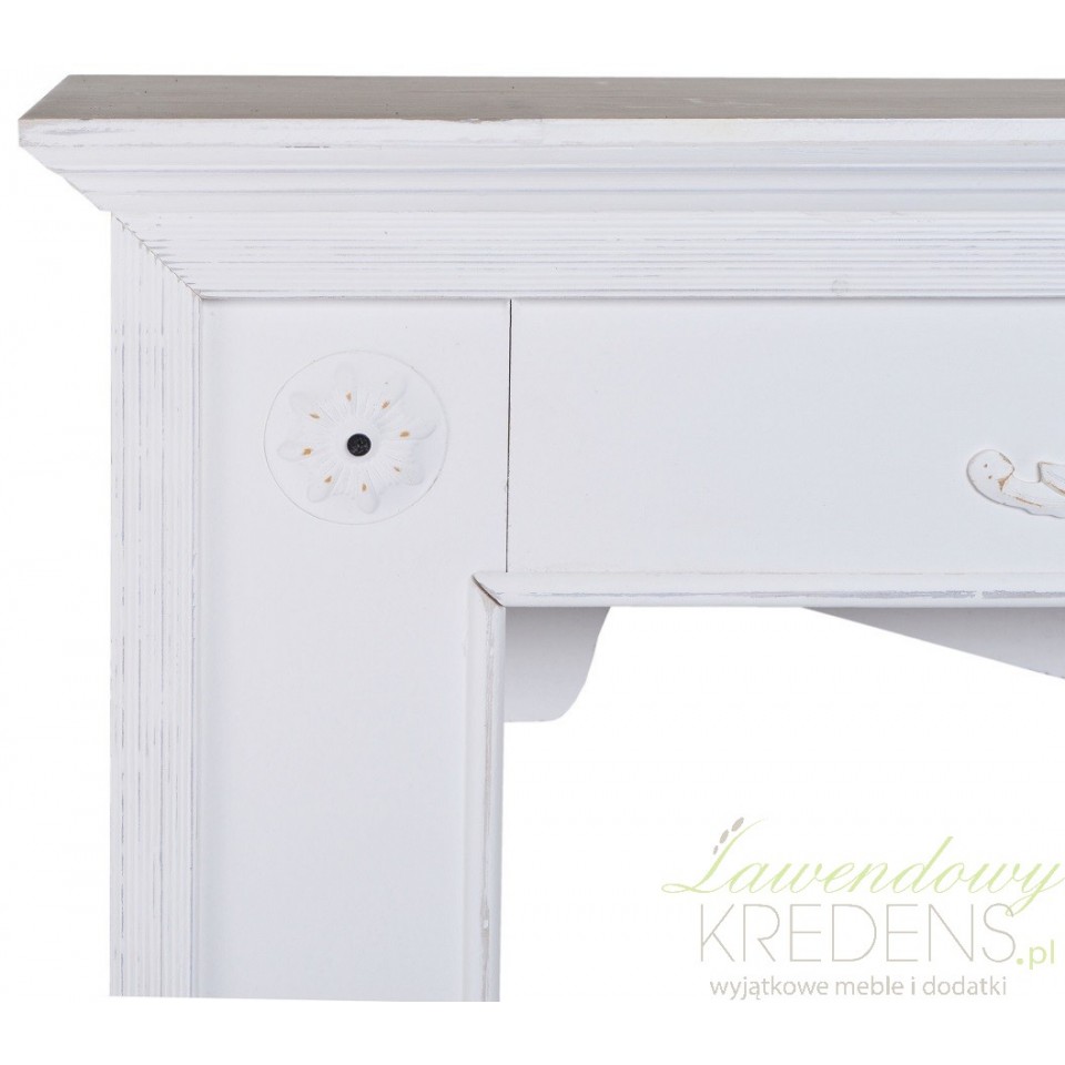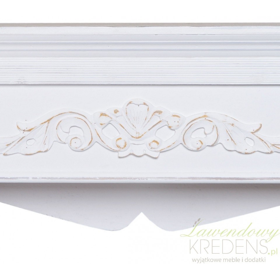 Czyste, białe wykończenie z przyciągającym wzrok rzeźbieniem, sprawiają że prezentowana atrapa kominka to wyselekcjonowany mebel w prowansalskim stylu, który po części zastąpi Ci prawdziwy kominek w salonie. Imitacja kominka z brązowym blatem, który świetnie sprawdzi się w roli półki na rodzinne zdjęcia to dodatek, który zamieni zwykły salon w relaksującą oazę spokoju. Wybierz elementy wyposażenia wnętrz, które zmienią Twoje życie na lepsze. Urządzając dom na styl prowansalski, niezbędne meble i akcesoria znajdziesz w naszym sklepie!