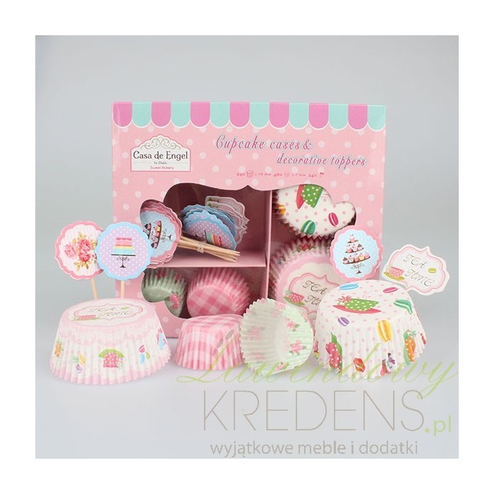 Foremki na babeczki wykonane są z wysokiej jakości papieru i nie przepuszczają tłuszczu. Papierowe foremki znajdują się w dużym zestawie zawierającym: dwadzieścia cztery sztuki małych foremek, czterdzieści osiem sztuk dużych foremek i dwadzieścia cztery ozdobne wykałaczki. Papilotki do muf finek są bardzo urocze i dziewczęce i posiadają wspaniałe kolory i wzory.