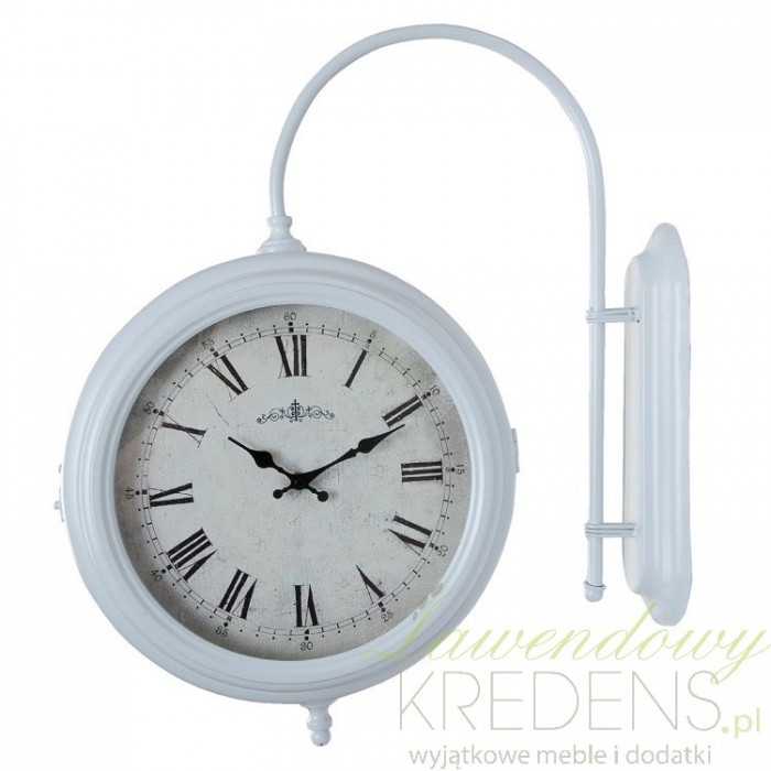 Zegar dwustronny o delikatnej i uniwersalnej kolorystyce, biała rama wykonana z metalu w połączeniu z białą tarczą uzupełnioną rzymskimi, czarnymi cyframi oraz dekoracyjnymi wskazówkami tworzą wspaniały zegar dworcowy. Nasze zegary dworcowe, nadadzą klimat i styl każdej aranżacji, są doskonałym pomysłem do małych lub dużych mieszkań.