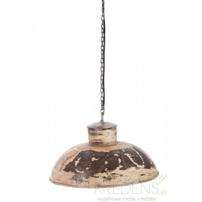 Wisząca na łańcuchu lampa metalowa jest wykonana w starym stylu na co wskazują widoczne odpryski. Poznaj jej antyczną naturę i wykorzystaj nietypowa formę oświetlenia wszędzie gdzie zechcesz. Lampy metalowe to świetna propozycja dla poszukujących oświetlenia nad stół do kuchni lub jadalni ale też do baru lub restauracji w stylu loft. Wisząca lampa Vintage to tegoroczny trend aranżacji wnętrzarskich.
