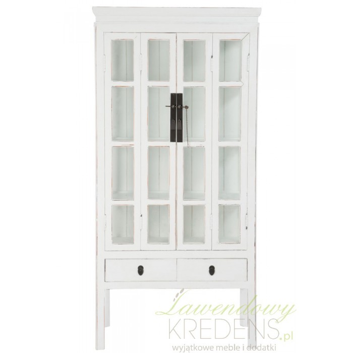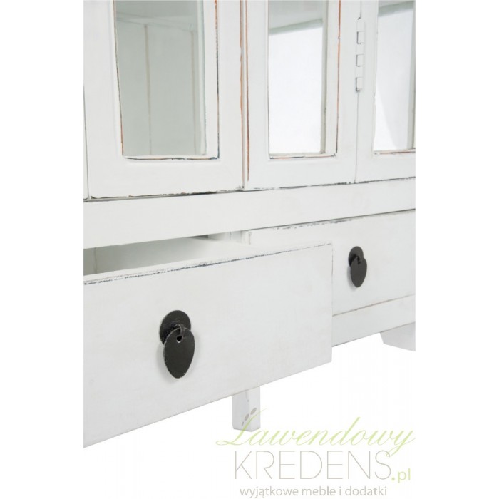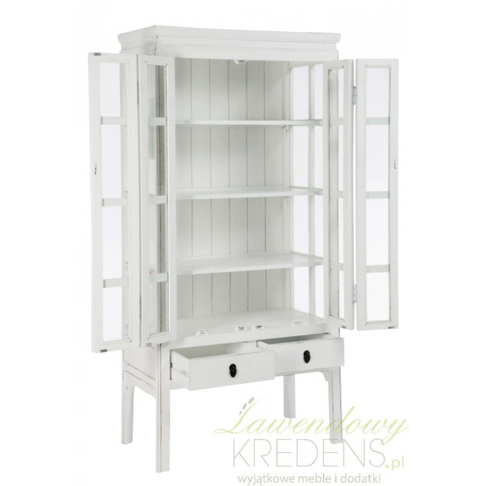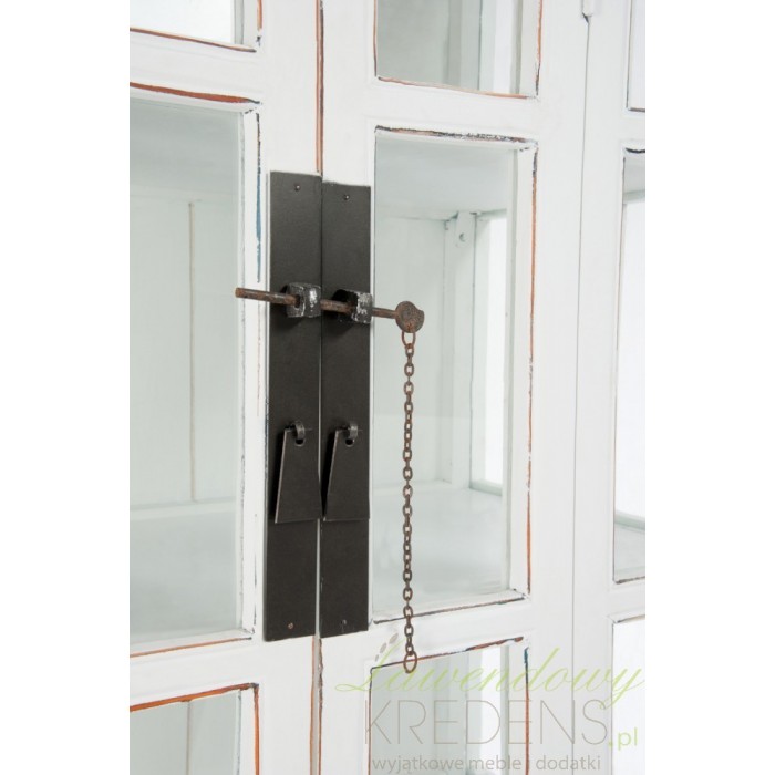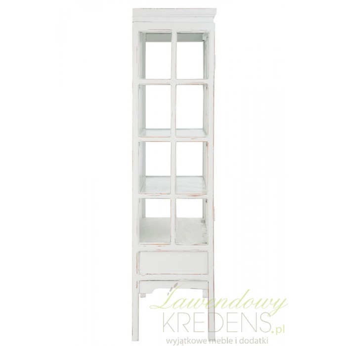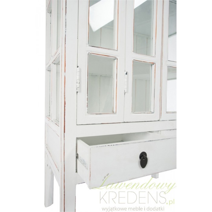 Witryna w stylu prowansalskim w jasnym kolorze swój urok zawdzięcza zarówno naturalnej kolorystyce jak i oryginalnemu kształtowi. Wykonana z drewna i szkła będzie towarzyszyła Twojej aranżacji przez długie lata.
