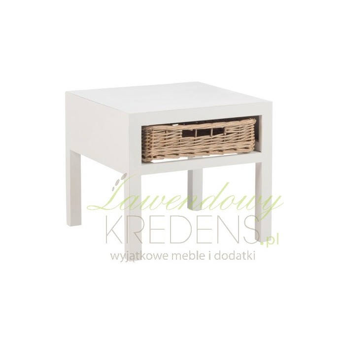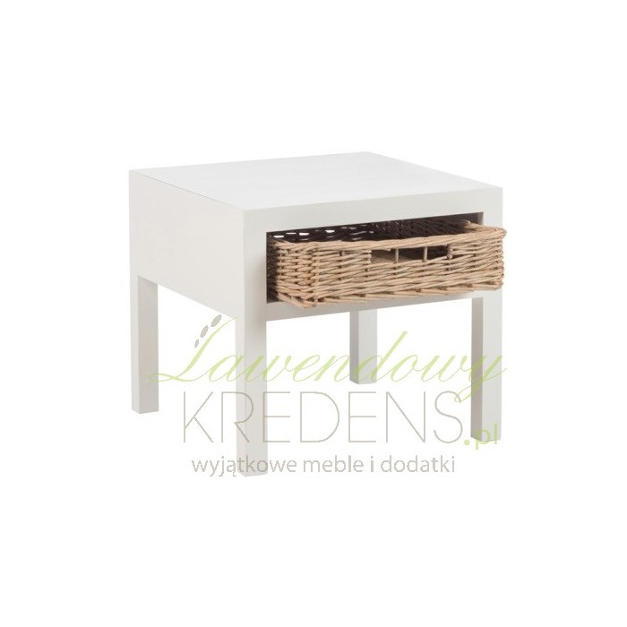 Połączenie prostego stolika nocnego z rattanową szufladą to jeden z naszych stylowych mebli, który polecamy do urządzenia klimatycznych sypialni.