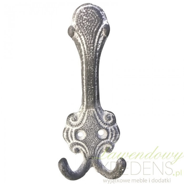 Wieszak ścienny wykonany jest z wysokiej jakości trwałego materiału. Wieszak prowansalski ma szary kolor i jest mocno postarzany. Jest pięknie rzeźbiony i posiada dwa wieszaczki. Wieszaki ścienne Chic Antique to idealne rozwiązanie dla twojego domu