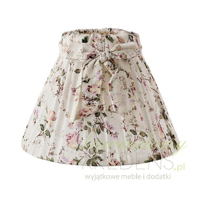 Śliczny abażur prowansalski w kwiatowym wydaniu. Bawełniany klosz obsypany drobnymi kwiatuszkami to sposób na niepowtarzalną charakteryzację lampy do sypialni lub salonu. Związany w górnej części wstążką abażur w stylu prowansalskim zamieni codzienną aranżację w bardzo przyjazną strefę służącą odpoczynkowi. Wykorzystaj abażury w stylu prowansalskim i abażury w kwiaty do klasycznych i francuskich lamp i dodaj swojemu wnętrzu naturalny akcent.