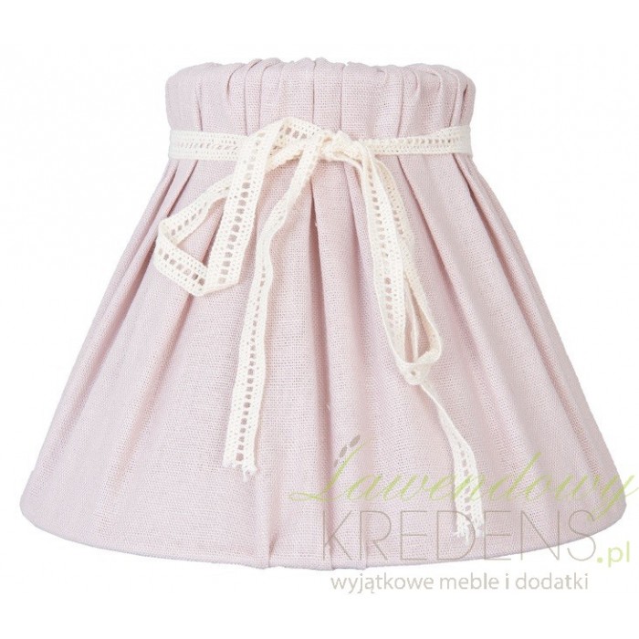 Przewiązany białą wstążką różowy abażur prowansalski to wyjątkowy model, którego prosty kształt nada wnętrzu klasy, a pastelowy kolor różu pomoże stworzyć subtelnie prezentujace sie źródło światła.