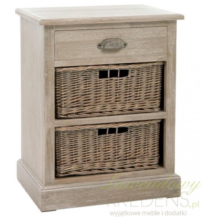 Bielona szafka nocna na masywnym cokole i miejscem na dwa wiklinowe koszyki, które otrzymasz od nas w zesatwie z tym pięknym meblem!