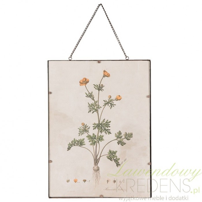 Obraz retro z rośliną to obraz do zawieszenia na ścianie za pomocą łańcuszka. Przygaszone barwy obrazu wpisują go w kategorie obrazów, na których swoje piętno odcisnęła wieloletnia historia. Obraz na łańcuszku to wysoka roślina z kwiatuszkami jest motywem naturalności, doskonale sprawdzi się zatem we wszystkich wnętrzach o francuskim designie. Wnętrza w stylu retro wymagają dobrze dopasowanych i umiejętnie stylizowanych na stare dodatków dekoracyjnych takich jak obrazy ścienne.