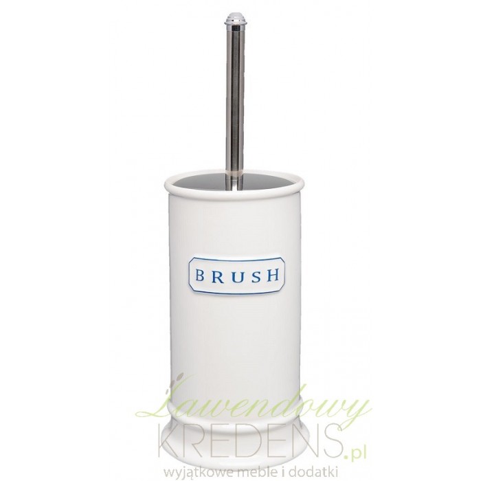 Szczotka do toalety wykonana jest z wysokiej jakości materiałów. Ma biały kolor i jest w kształcie walca. Szczotka do wc posiada dekoracyjny angielski ciemny napis Brush. Idealna do eleganckich łazienek.