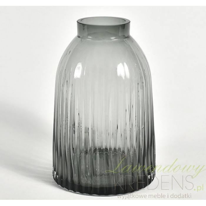 Wazonik Belldeco wykonany ze szkła z charakterystycznym wybarwieniem w popielatym kolorze. Rozjaśniająca się ku górze kolorystyka wazonu zwraca na siebie uwagę i szklany wazonik w wyrafinowany sposób podkreśla kwiatowe dekoracje. Kształt wazonu jest zbliżony do dużego słoja i eektownie prążkowany. Wybieraj ciekawe i niepowtarzalne wazony Belldeco, przygotowaliśmy ich dla Ciebie co nie miara i gwarantujemy perfekcyjnie urządzone wnętrze.