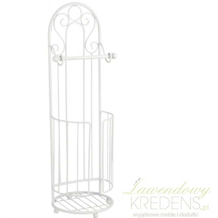 Biały stojak na papier toaletowy będzie idealnie pasował do ustawienia w praktycznej łazience. Świetnie dobrany kształt i kolorystyka to doskonałę połączenie bieli z metalowym stelażem. Uchwyt na papier z dodatkowym miejscem u dołu, które możesz wykorzystać jako gazetnik lub pojemnik na zapasowy papier charakteryzuje się przede wszystkim funkcjonalnością. Dodatki do łazienki w stylu prowansalskim urozmaicą i podkreślą funkcjonalną stronę wnętrza.