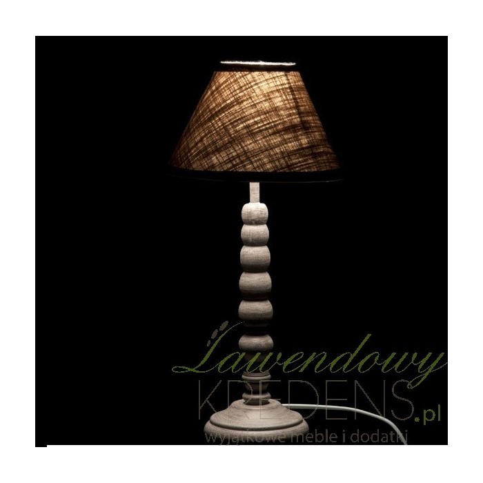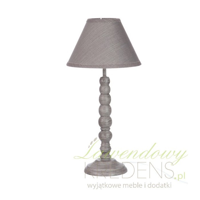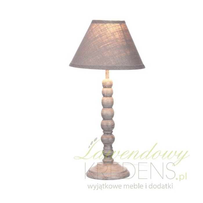 Lampka prowansalska stojąca na eleganckiej nodze wyglądającej jak połączone ze sobą drewniane kulki. Okryta szarym abażurem lampka nocna doskonale odnajdzie się w sypialni i salonie, gdzie mile widziane są klasyczne elementy oświetlenia. Lampki w stylu prowansalskim udowadniają, że styl francuski może kreować bardzo przytulne wnętrza. Wybierz proste lampki do ustawienia na szafce lub komodzie aby Twoja aranżacja została dopełniona pięknym światłem w gustownej oprawie.