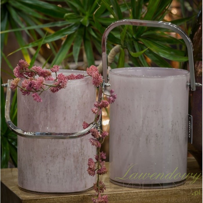 Lampion Aluro z kolekcji Ashley wykonany jest z wysokiej klasy szkła i srebrnego aluminium w postaci rączki do przenoszenia. Świecznik Aluro ma delikatny jasnoróżowy kolor i wszędzie można go z łatwością dopasować kolorystycznie. Idealny do kobiecego pokoju. Produkty Aluro świetnie wyglądają i cieszą się dużym powodzeniem.