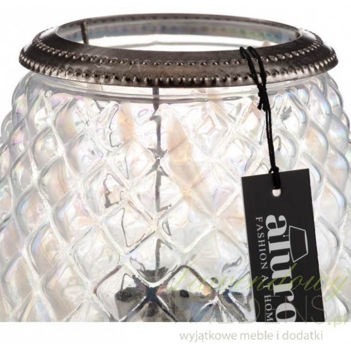 Śliczny lampion Aluro z miejscem na tealight wykonano w całości ze szkła i nałożono na jego szczycie metalowy pierścień.
