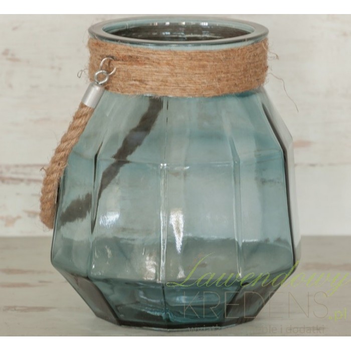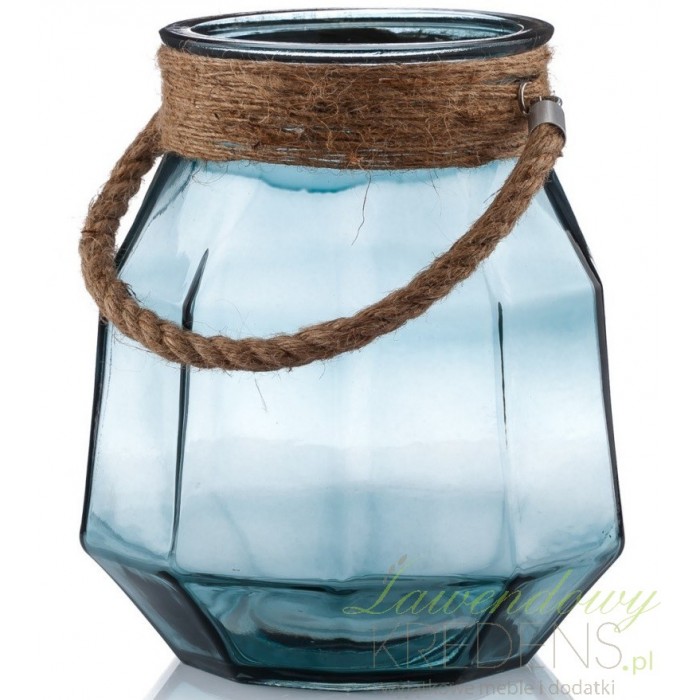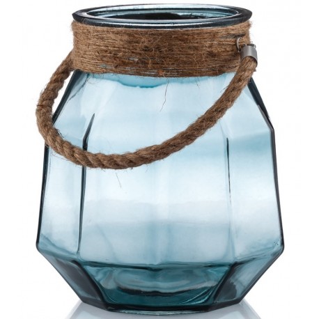 Duży lampion Aluro ze szkła w niebieskim kolorze jest elementem oświetlenia po zmroku i opływajacym naturalnością dodatkiem za dnia. Fantastyczny detal w formie sznura oplata ujście lampionu i tworzy funkcjonalny uchwyt. Niepowtarzalny efekt świetlny zapewnisz za pomocą umieszczonej wewnątrz świecy bądź elektrycznego tealighta. Lampiony Aluro tworzą najpiękniejsze wnętrza!