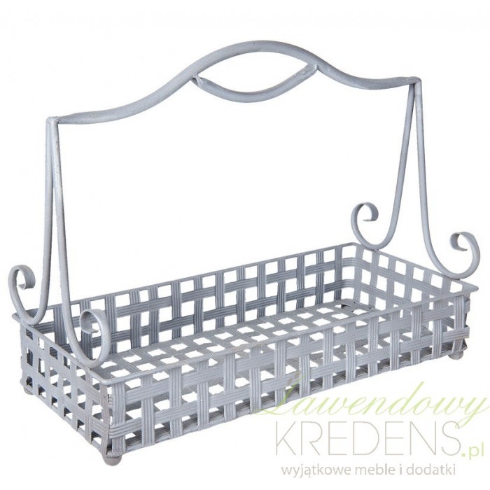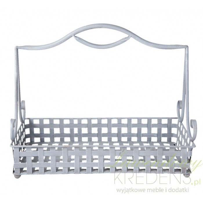 Metalowy kosz prostokątny w białym kolorze. Kosz w stylu prowansalskim posiada nieruchomy uchwyt służący prostemu przenoszeniu z miejsca na miejsce. Kratkowana podstawa i dekoracyjne wygięcia uchwytu tworzą dodatek doskonały na rodzinny stół jeśli wypełnisz koszyk pieczywem lub do salonu jeśli ustawisz w nim kwiat czy też inną dekoracje. Wybieraj funkcjonalne dodatki do domu, które zdecydowanie polepszają standardy wnętrza, w którym mieszkasz.