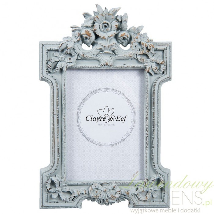 Ramka prowansalska firmy Clayre & Eef wykonana jest z poliresingu i szkła. Ramka na zdjęcia ma piękny szary kolor i przepiękne dekoracyjne kwiatuszki. Ramki na zdjęcia są wspaniałym pomysłem na wyjątkowy prezent.