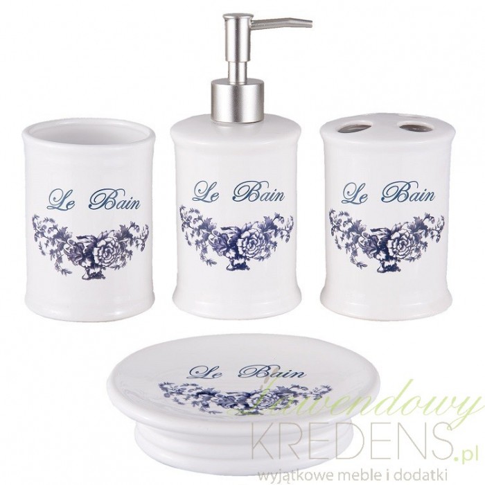 Zestaw łazienkowy w stylu prowansalskim to trzy ceramiczne pojemniki z kolekcji francuskich dodatków do łazienki Le Bain.