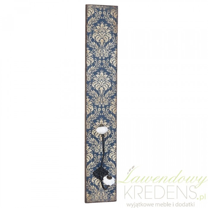 Urokliwy wieszak retro został wykonany z drewna i metalu. Wysoki wieszak wyróżni się na każdej ścianie za sprawą wysokiej i bardzo dekoracyjnej tabliczki, na której zamontowano podwójny hak. Tabliczka ozdobiona finezyjną grafiką jest również czarująco postarzona. Wybierz wieszaki ścienne w stylu retro, które łączą w sobie lekkość i postarzane ornamenty tworząc jednocześnie praktyczne akcesoria do wyposażenia wnętrz.