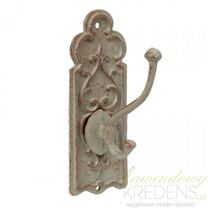 Oliwkowy prowansalski wieszak firmy Clayre & Eef wyglądający jak klamka do drzwi!