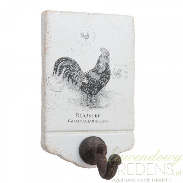 Wieszak w stylu rustykalnym ma kolor antycznej bieli. Antyczny charakter wieszaka to zasługa postarzeń na jego krawędziach oraz lekko rdzawego uchwytu. Grafika koguta wygląda jakby została naszkicowana ołówkiem i ma grafitowy kolor. Oryginalne wieszaki do kuchni taki jak wieszak z kogutem to gwarancja, że urządzisz swoją kuchnie pięknie i praktycznie!