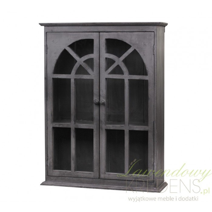 Grafitowa szafka ścienna doskonale oddaje antyczny klimat. Jej ciekawie uformowane drzwiczki są przeszklone dzięki czemu to świetny sposób na prezentację ceramiki, którą do tej pory trzymałeś zamkniętą w kartonach. Szafka ścienna Chic Antique o matowym wykończeniu spełni się w roli mebla dekoracyjnego oraz praktycznego. Wybierz meble prowansalskie do kuchni lub stylowej łazienki.