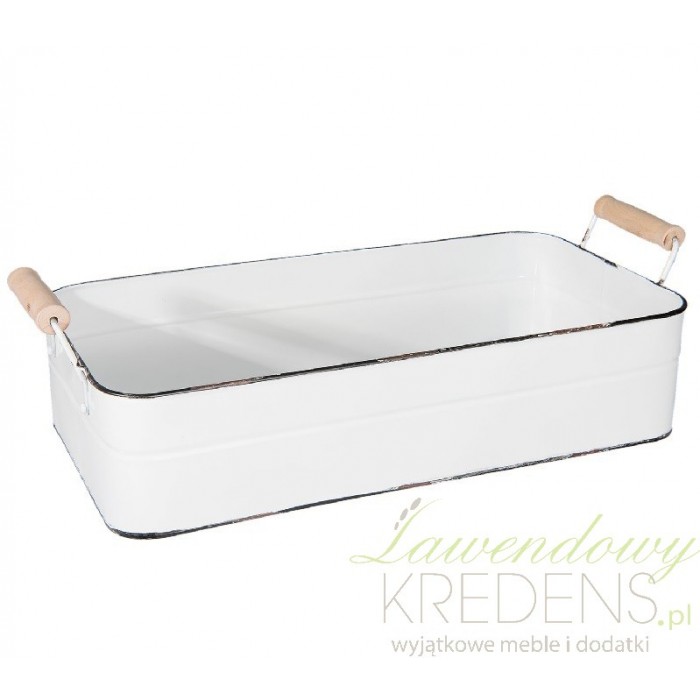 Duże tace to bardzo dobry pomysł na wspaniały dodatek do wnętrz. Duża taca pomieści wiele rzeczy i będzie sporym ułatwieniem w kuchni. Taca metalowa wykonana jest z metalu w kolorze białym. Jest bardzo pojemna i głęboka. Posiada dwa wygodne uchwyty do przenoszenia.