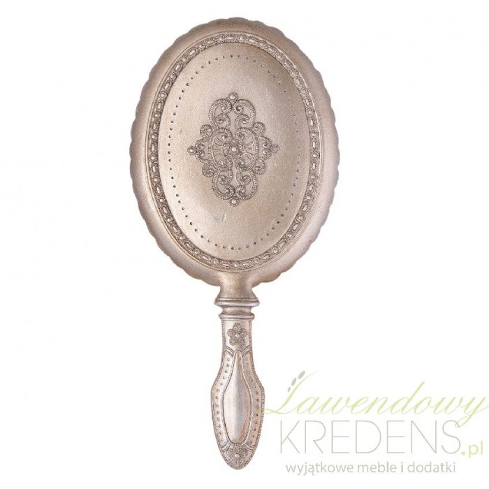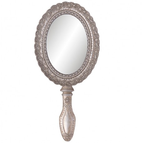 Piękne lusterko ręczne Clayre&Eef w stylu prowansalskim zostało uformowane z metalu. To co je wyróżnia to szlachetny kolor srebra i francuskie rzeźbienia. Lusterko ręczne możesz schować do torebki lub położyć na toaletce. Wybierz ozdobne lusterka ręczne w stylu francuskim aby zawsze mieć przy sobie wyjątkowe i praktyczne lustro.
