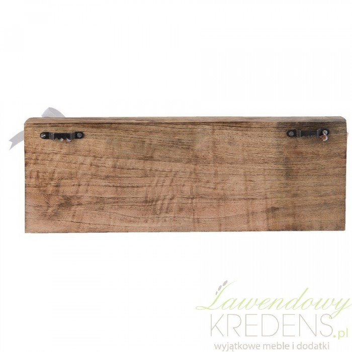 Podłużna deska z literami ułożonymi w napis Home doskonale sprawdzi się jako ozdoba ściany lub drzwi. Litery z przetarciami i odpryskami ustawione w poziomej linii na brązowej desce mają dodatkowe ozdobniki w postaci kokardek i koralików. Śliczna dekoracja ścienna podkreślająca rodzinny klimat i stanowiąca o ciepłej atmosferze. Wybieraj dekoracje Clayre&Eef, które stworzone zostały z miłością i dbałością o każdy detal.
