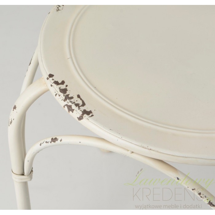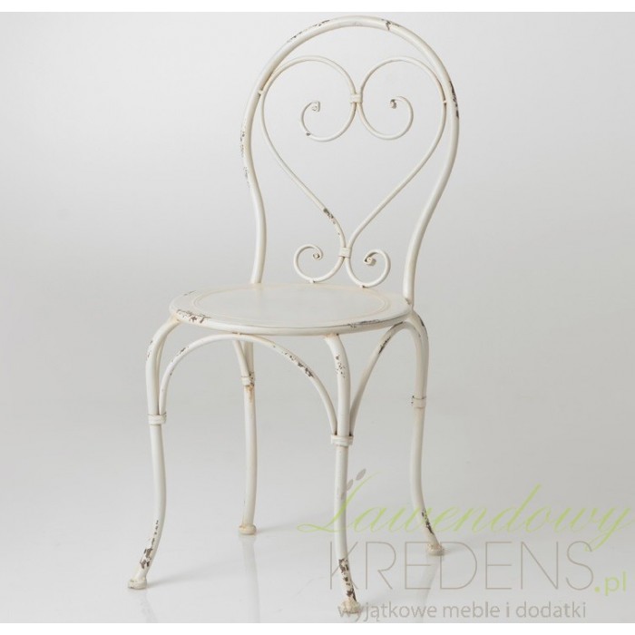 Krzesło prowansalskie wykonane jest z wysokiej jakości metalu i ma śliczny kremowy kolor. Krzesło metalowe posiada liczne przetarcia farby i ma okrągłe siedzisko. Stoi na lekko wygiętych czterech nogach i ma piękną dekorację oparcia. Meble metalowe to doskonały wybór!