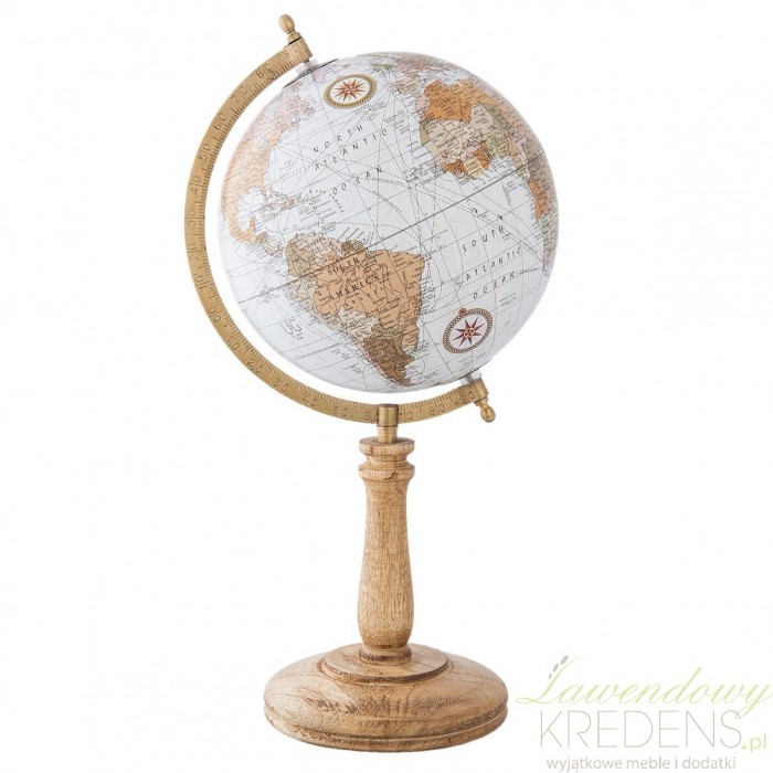 Globus ozdobny na drewnianej nodze to doskonały sposób na ozdobę wnętrz takich jak gabinet, biuro podróży lub pokój młodzieżowy.