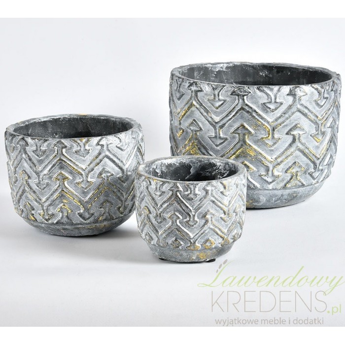 Osłonka prowansalska firmy Belldeco wykonana jest z dobrej jakości betonu. Ma przyjemny dla oka, śliczny szary metalowy kolor i miejscami prześwitujące miejsca w kolorze żółtym. Jest szeroka i ma ciekawy wzór w rozchodzące się do góry i dołu strzałki. Osłonki Belldeco to doskonały wybór na długie lata.