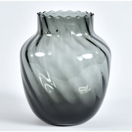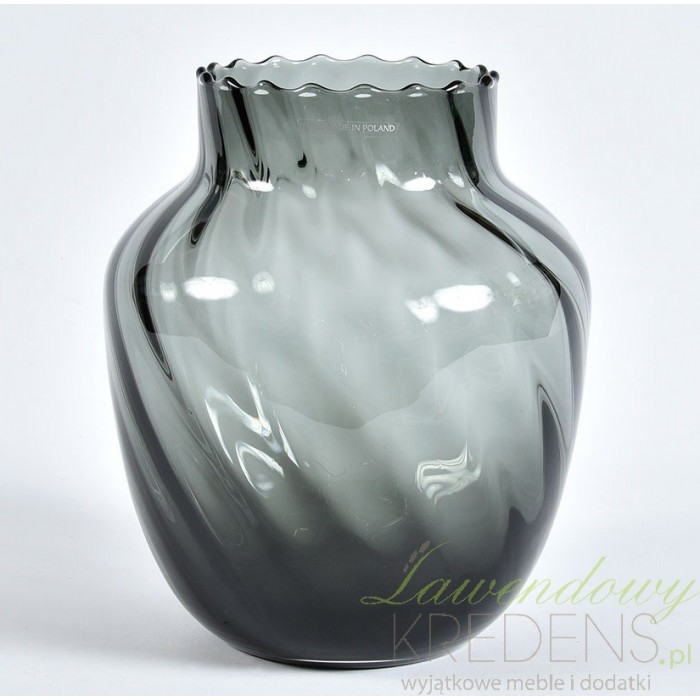Popielaty szklany wazon Belldeco o ciekawym wzorze w skręcające pasy!