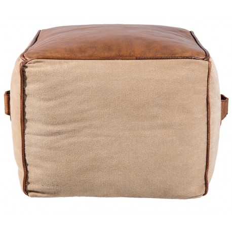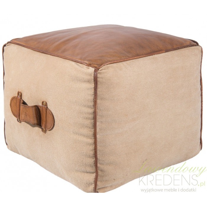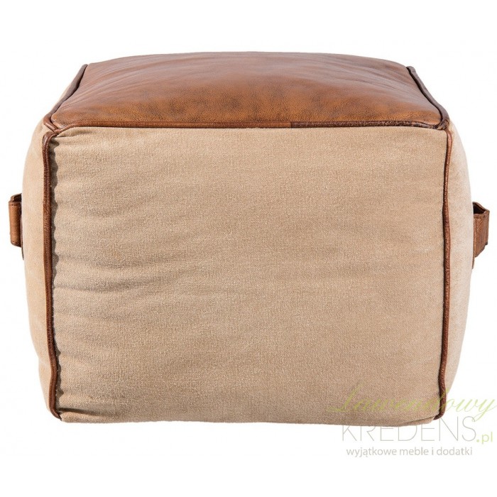 Puf kwadratowy w brązowej kolorystyce, posiadający skórzane elementy znajdujące się u góry i po bokach. Clayre & Eef i jego wspaniałe meble i dodatki odmienią wnętrze w prosty sposób!